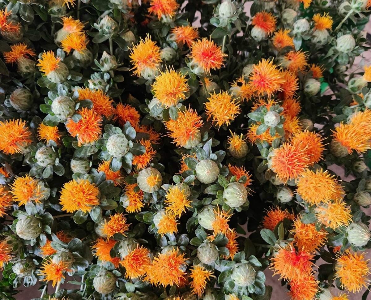 Textured safflower blooms that add color depth and character to arrangements.